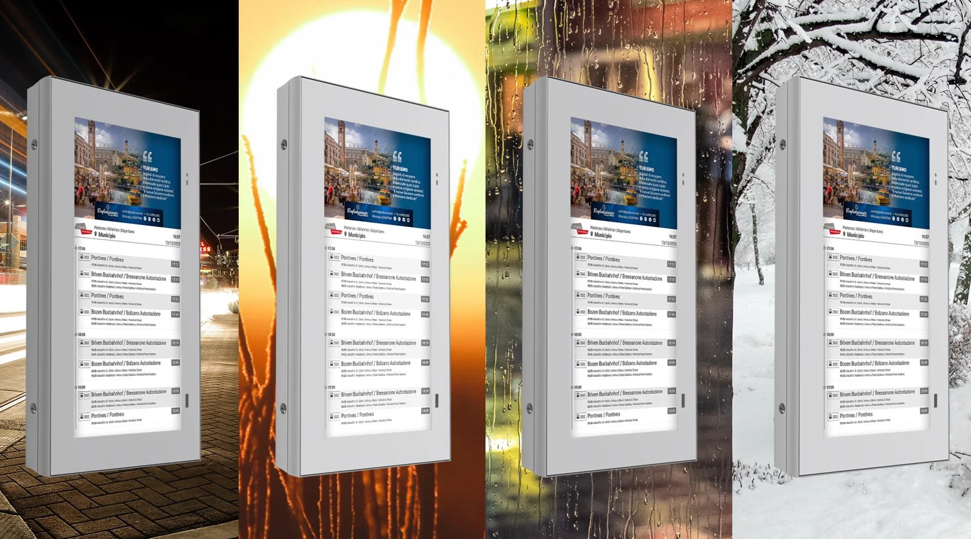 FTX è un display informativo per i passeggeri creato per soddisfare tutti i requisiti per l’utilizzo all’aperto in condizioni meteorologiche estreme. Luminosità fino a 2.000 nit con il pannello LCD che assicura visibilità anche sotto la luce diretta del sole e grazie alla più recente e sofisticata tecnologia garantisce le massime prestazioni anche in condizioni di alte temperature, fino a +50°C
